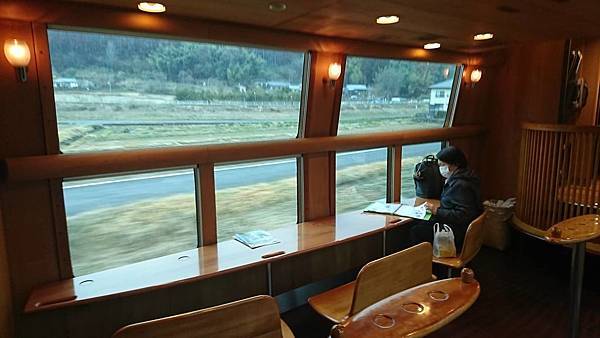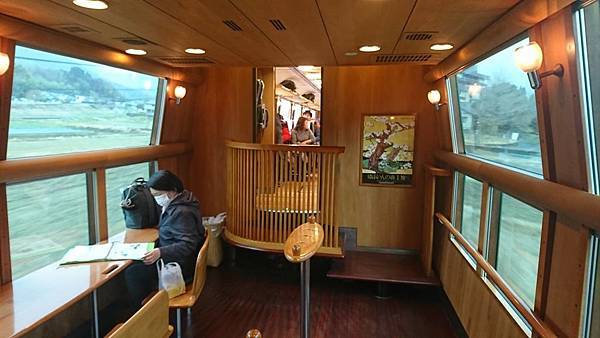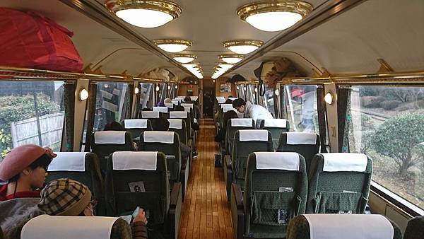 一樣附有餐車 內裝也有些差異 由布院3號只有4節車廂 1號有5節