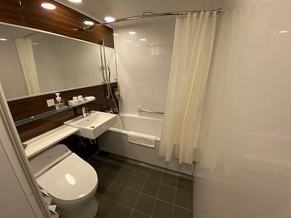 廁所空間也相當大免治馬桶也是日本飯店標配,控制鍵在牆上 可惜沒有完全乾濕分離