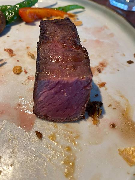 蘑菇醬與培根的包裹還不錯,裡面牛排大概也在5分熟
