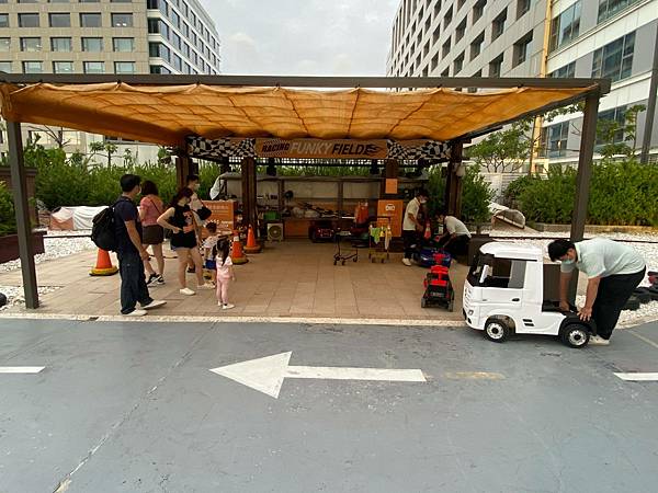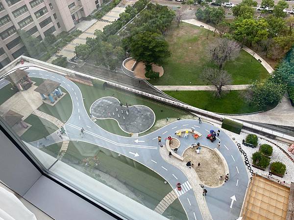 4樓外廣場就是為了孩童設計的空間,有噴水池、玩沙池、小火車、小汽車等等設施
