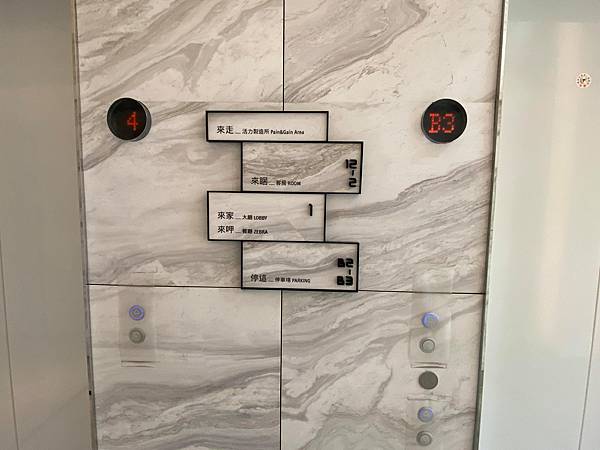 每一層樓的電梯出來空間都會有一些文字和設計圖案
