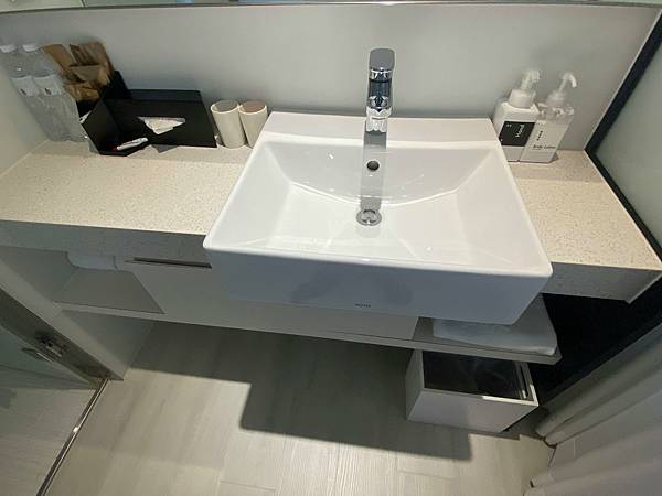 洗手台在外面 備品該有的都有 另外比較特別是有刮鬍膏