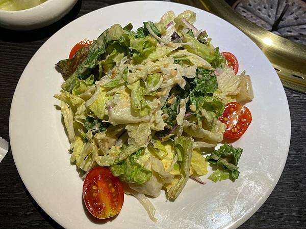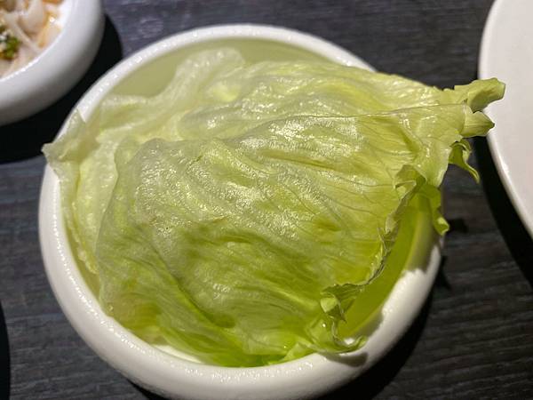 一開始上菜的是主廚沙拉和包燒肉的生菜 這2道都是可以再免費續加