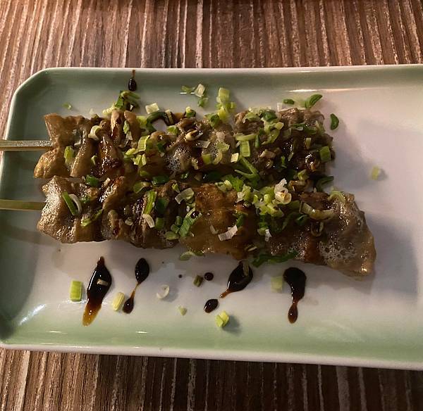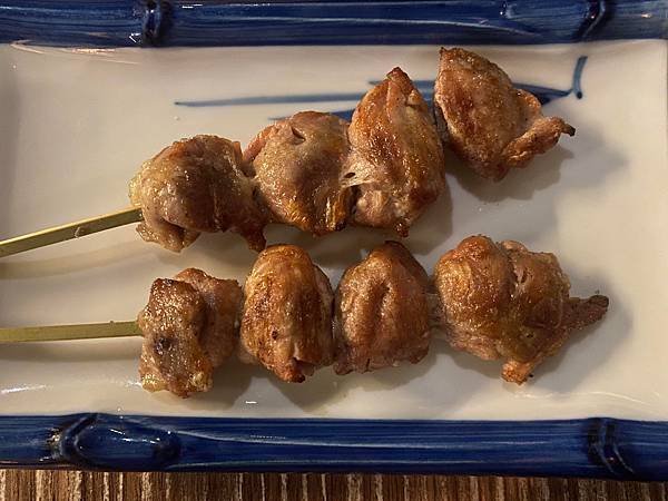 鹽烤雞肉串外面烤得酥脆 裡面雞肉還是很多汁 果然是店家招牌之一