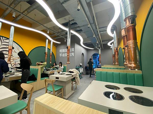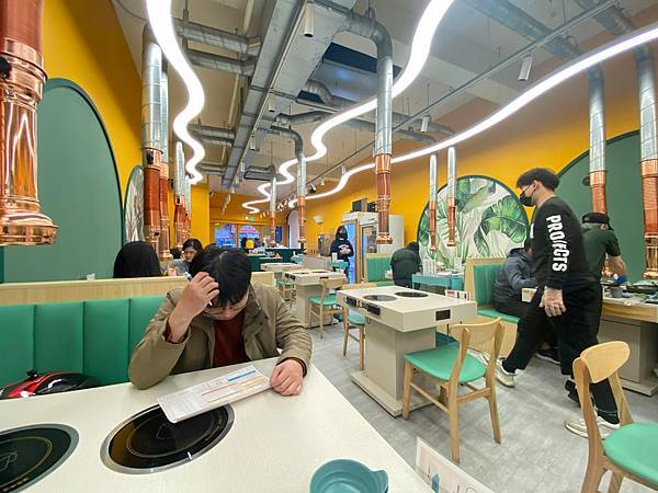 饞饞燒肉鍋物裝潢外觀上使用比較少見的黃色系裝潢