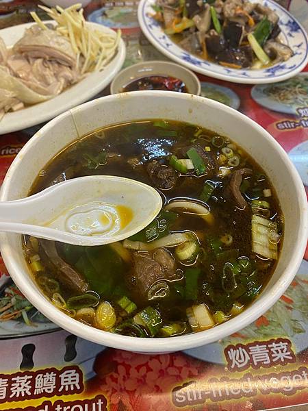 店家主打牛肉麵、客家料理與麻醬麵,這次點了招牌牛肉麵、脆皮油雞、炒香菇