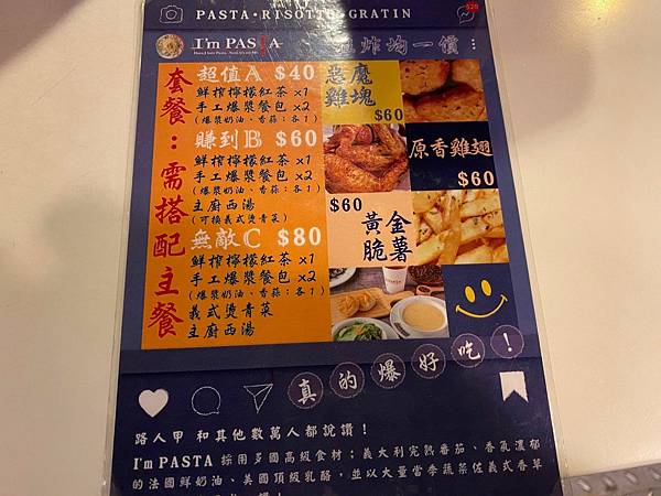 I'm pasta在大台北有許多分店 這次在光華商圈店用餐