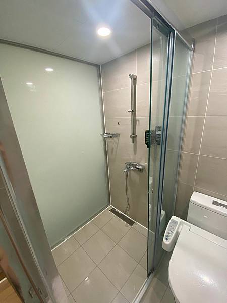 但是淋浴空間的乾濕分離玻璃門壞了... 拉不起來 所以一定會噴出來到外面馬痛這邊