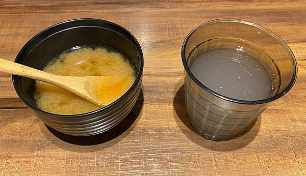 檸檬水滿好好的,味噌湯就是單純的湯,裡面沒有其他的配料