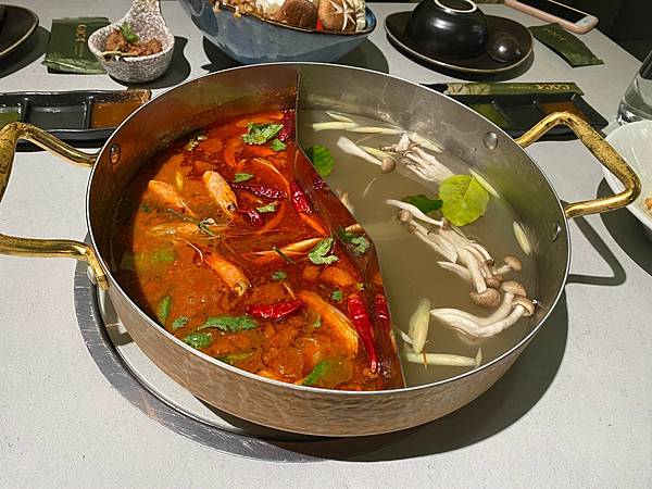 湯底選經典冬陰功鍋 (微辣) 和香茅野菇鍋