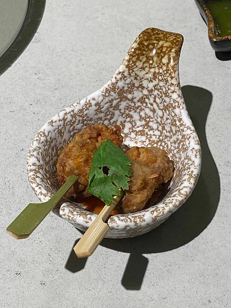 前菜為雞肉串 也是酸甜的醬汁 味道普通