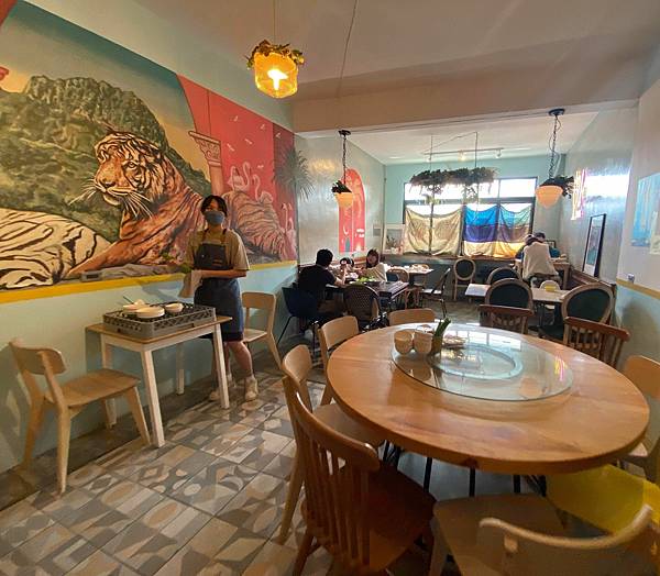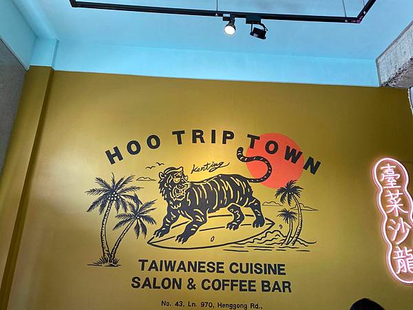 牆壁的老虎很吸睛 有著熱帶哦椰子樹 環境滿舒適