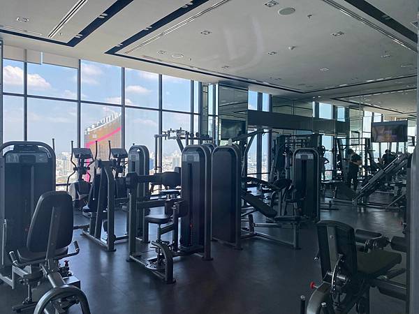 在泳池一旁也有健身房 設備滿多元