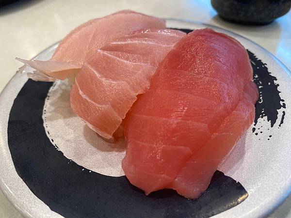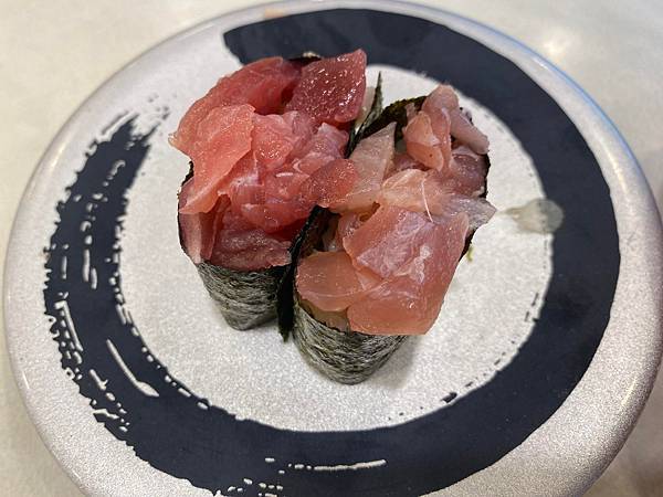 雙饗鮪魚軍艦 應該適用赤身和腹脂做成的 但是覺得還是吃整片的口感比較好