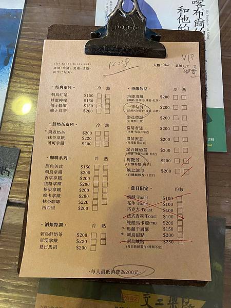 菜單有飲品以及甜點類 除了低消外客滿也會有用餐時間限制
