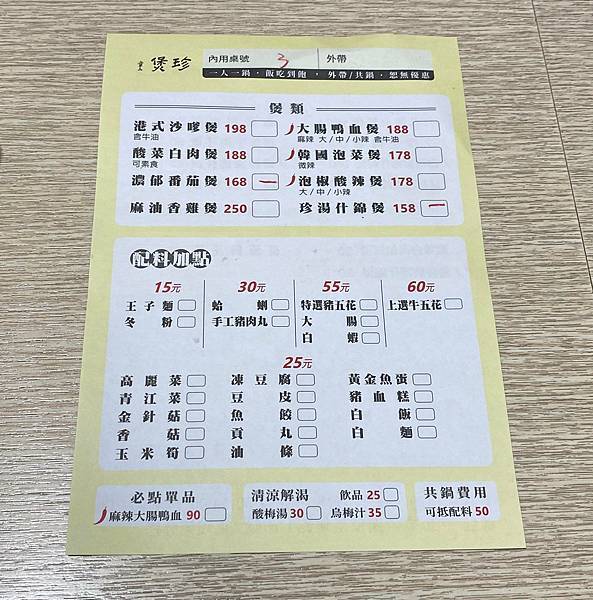 菜單上的小火鍋大多都是100-200之間 再加點一些配料也不會很貴