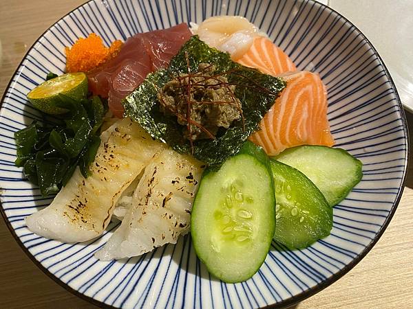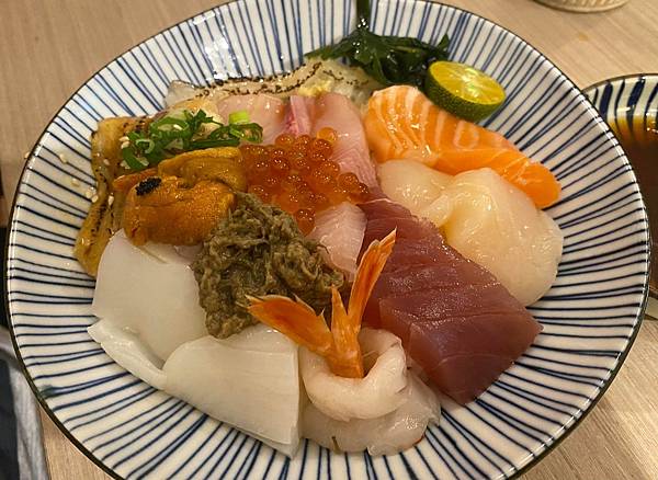 刺身丼有鮭魚、鮪魚、比目魚、干貝等海鮮