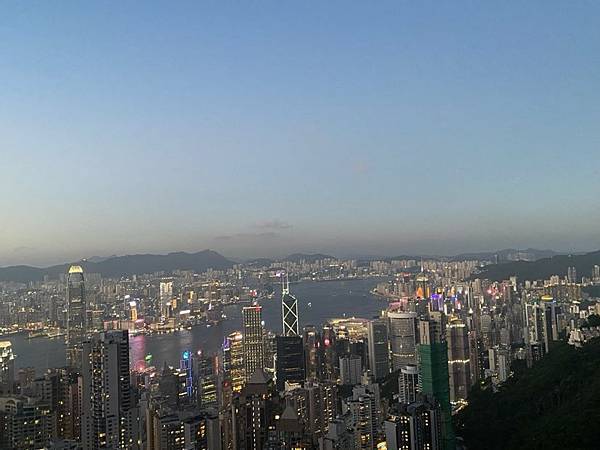 俯瞰整個維多利亞港的夜景 上面的人很多 大概從6點待到了7:30