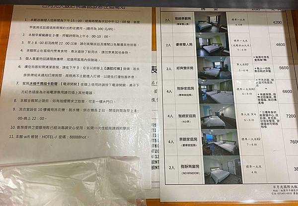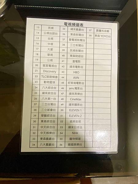 房間相關的的資訊 有各種的房價資訊、電視頻道的說明