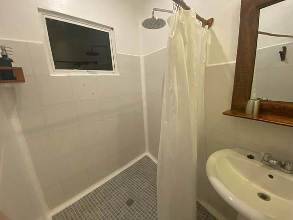 衛浴空間很大 雖然是用拉簾不過馬桶在另外一邊 不會到噴過去